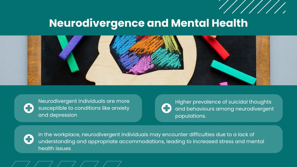 Neurodivergent individuals are at increased risk of anxiety, depression, and other mental health issues. Statistics reflect a concerning trend: studies show that 34.2% of autistic individuals experience suicidal ideation, significantly higher than in neurotypical populations (Autistica, 2018). ADHD carries a similarly high risk, with a 2019 meta-analysis linking it to suicide attempts at nearly twice the rate of the general population (Papyrus UK, 2022). These vulnerabilities make it imperative that we rethink mental health support systems in ways that reflect the unique needs of neurodivergent individuals, particularly in occupational settings where these stressors often peak.