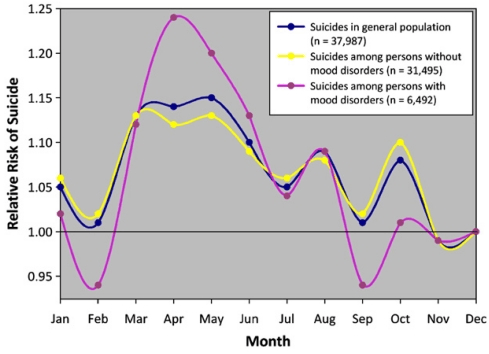 So while it’s understandable that we might think New Year’s is a particular hot spot for suicides, the evidence just doesn’t back that up in a straightforward way. Suicide is, unfortunately, a year-round concern—and if there’s a takeaway here, it’s that we should stay vigilant and compassionate all the time, not just when the calendar changes.