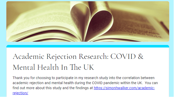 Hi there and welcome to the call out page for my short term research study into the correlation between academic rejection and mental health decline during the COVID pandemic within the UK.